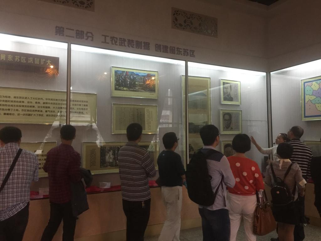 随后一行参观了闽东革命纪念馆,管内展出了各个战争时期的珍贵革命文物和大量的文献资料和图片,生动介绍了闽东苏区根据地军民可歌可泣的动人事迹。每一幅历史的画卷,都诉说那令人难忘的年代;每一位烈士的背后,都有着可歌可泣感人的故事,甚至还有不少烈士连照片、姓名都没有。革命先烈坚守共产党的秘密,发动武装暴动、武装割据,用鲜血和年轻的生命捍卫了红色苏维埃政权,他们大无畏的精神深深震撼着教师的心灵,让人无不动容、肃然起敬。