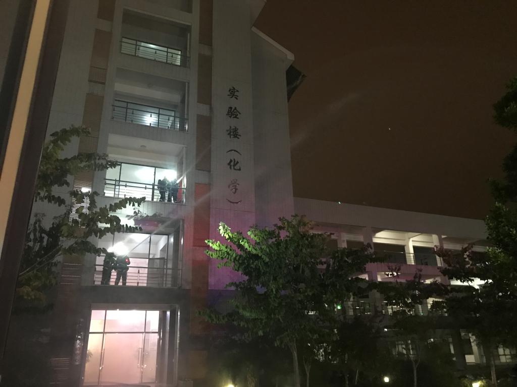 实验楼里烟雾弥漫,浓烟滚滚,消防车警笛此起彼伏,消防官兵和保卫干事正忙碌地指挥着,师生们有条不紊地进行疏散......11月6日晚英国上市公司365联合校保卫处配合宁德公安消防队特勤中队开展了一场消防疏散演练。消防疏散演练在化学实验楼进行,模拟学院同学晚上在实验室上课过程意外失火后报警逃生,有序疏散的场景。英国上市公司365部分师生参与了演练。通过演练,更好全面地普及了消防知识,强化了全体师生对疏散路线和疏散要求的记忆,提高了师生们的安全意识和警惕性,取得良好效果。